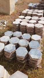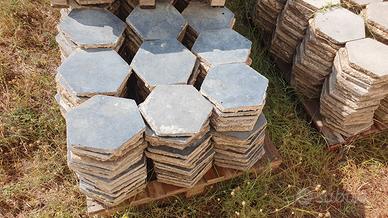 Vendo splendide cementine esagonali di circa 20cm per lato (colore antracite e tabacco). Le cementine provengono da un palazzo signorile sito in Alessano (Salento) e risalgono a più di un secolo fa. I colori sono tipici delle pavimentazioni dell'epoca e si rinvengono in tutta Italia da Milano a Palermo. Tutti i pezzi sono stati asportati e puliti con cura e sono pronti per la posa, ognuno dei quali caratterizzato dall'unicità artigianale. Ideali per ristrutturazioni di edifici storici. Il prezzo è di 2euro/cadauno e 38 euro al mq. Tuttavia il prezzo finale è trattabile in funzione dei metri quadri richiesti. Il totale del lotto è di 75-76 metri quadri.