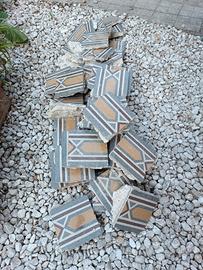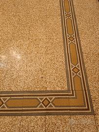 Antica greca di cementine d'epoca, rimosse da pavimento di villino anni '20. Numero di piastrelle 54, dimensioni 20x20x2 cm. La greca era posata su una stanza di 4mx4m. Le graniglie sono da ripulire dalla malta della muratura. 2 angolari disponibili su 4, gli altri 2 si sono rotti nella rimozione. Vendo in blocco con ritiro a mano a Firenze sud (campo di marte)