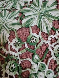 centrino all' uncinetto fatto a mano in cotone sfumato verde. circonferenza 55cm da stirare se interessati contatto tel 3338614983