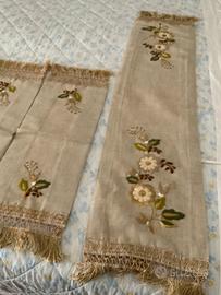Tre centri in lino ricamati a mano CENTRO GRANDE 127 cm x 30 cm CENTRI PICCOLI 70 cm x 25 cm Vendibili anche separatamente