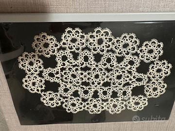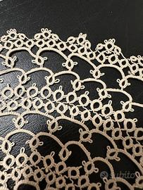 Vendo due splendidi centrini al chiacchierino realizzati con spoletta da mia mamma completamente a mano: il primo rotondo diametro 25 cm, il secondo ovale cm. 25 x 16.