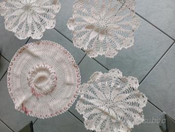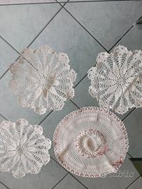 4 centrini all'uncinetto di diametro 24 cm 1 centrino all'uncinetto con nastro rosa diametro 28 cm