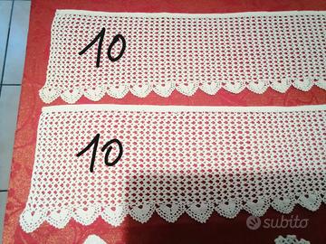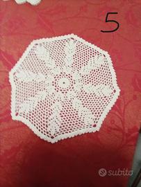Vendo centrini all'uncinetto e in tela ricamata, e 2 trine da applicare ad asciugamani, tende, ecc., tutto fatto rigorosamente a mano! I prezzi dei singoli pezzi sono scritti sulle foto. PREZZI GIÀ STRACCIATI, E NON TRATTABILI, astenersi perditempo. Preferibilmente trattative dirette, ma posso anche spedire tramite Subito