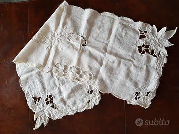 - centrino corredo rettangolare, bianco, ricami e intagli, cm.26x75 Euro5,00=