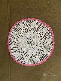 Vendo centrini fatti a mano uncinetto in cotone per fare bomboniere per matrimoni, battesimi, lauree, ecc. (in questo caso il bordo finale sarà del colore richiesto, es. rosa, azzurro, rosso, oro, argento, o altro colore a richiesta)