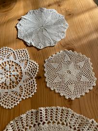 N. 6 centrini fatti a mano all’uncinetto. 5 in colore bianco e 1 in colore ecru