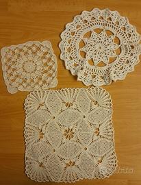 Sei centrini in filato di puro cotone, realizzati interamente a mano con estrema cura e precisione, lavorazione artigianale uncinetto e pizzo, diverse forme e lavorazioni: