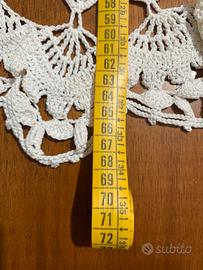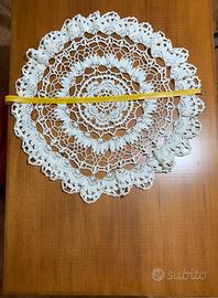 Centrino vintage per tavolo. M: 65x65 cm circa, rotondo, 100% cotone. Realizzato interamente a mano con motivo all’uncinetto. Made in Italy.