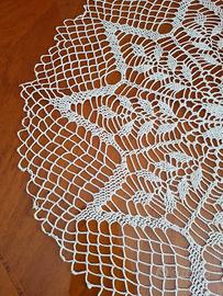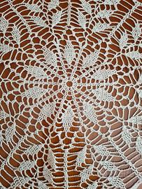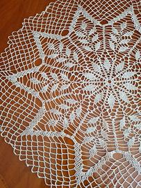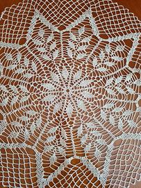 Elegante centrino rotondo, realizzato a mano ad ago. Anni 50. Usato, ottime condizioni. Eventuali lievi imperfezioni sono dovute all'età del centrino. - Motivo floreale centrale. - Design a stella. - Diametro cm 48 - Colore beige