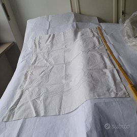 Centrino ricamato vintage di dimensioni 70 x 110 cm in cotone bianco. - Bordi risvoltati cuciti con orlo a giorno su tutto il perimetro, larghi 3,5 cm sui lati corti e 4 cm sui lati lunghi. - Peso 120 g (156 g al m²). - Perfetto senza macchie, smagliature o segni d'uso. Vendo singolarmente a 20 euro 1 Asciugamano in lino bianco nuovo - larghezza 75 cm con bordi sui lati corti di 4 cm con orlo a giorno - lunghezza 103 cm con bordi di fabbrica di 5 mm sui lati lunghi - con cifre ricamate PM - peso 190 g - Nuovo, mai usato, senza difetti, macchie né segni d'uso - Vendo singolarmente a 20 euro Peso complessivo 310 g Vendo entrambi gli articoli a 35 euro Vendo a Torino c/o pza Costantino il Grande (detta anche pza d'Armi, tra S.Rita e Crocetta). Spedisco con TuttoSubito. Per ACQUISTO PARZIALE A DISTANZA CONTATTARMI PRIMA della proposta o del pagamento, perché quest'annuncio è per l'intero set ed in caso di vendita è eliminato senza poter più vendere l'articolo rimasto