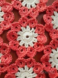 centro lavorato all'uncinetto con cotone spesso nei colori panna e corallo