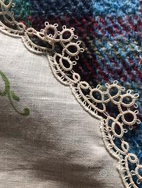 Centro di lino con bordo a chiacchierino e dipinto tutto fatto a mano da me