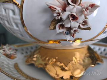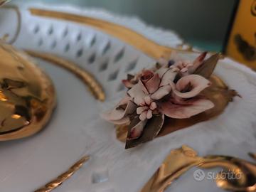 Stupendo centro tavola, porcellana di Capodimonte, tenuto in maniera maniacale, come nuovo, misure del piatto 45x 30 la giara sopra misura 40x20 ovviamente solo ritiro.