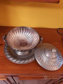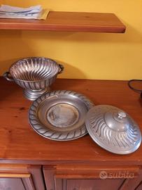 CENTRO TAVOLA IN PELTRO CON COPERCHIO E PIATTO