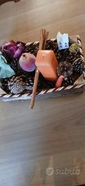 centro tavola Natalizio in legno vintage, con ceri e ghiande