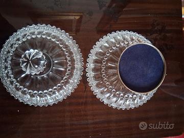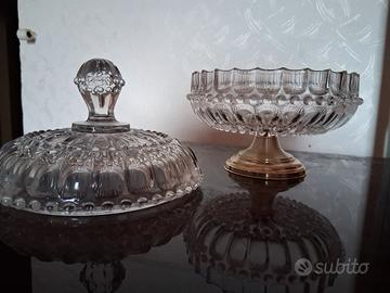 centro tavola in cristallo, con piedistallo