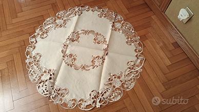 Vendo elegante centro tavola rotondo per mancato utilizzo. Color avorio, bordini dell' intaglio beige, diametro 85 cm, perfetto per decorare tavoli e tavolini con uno stile raffinato. ✨ Realizzato in tessuto sintetico stiro non stiro, pratico e pronto all’uso senza bisogno di stiratura. Presenta una bellissima lavorazione traforata stile intaglio, con ricami decorativi che donano un effetto elegante e senza tempo. Diametro 85 cm ✔ Facile da lavare e non si stira #centrotavola #centrotavolarotondo #tovaglietta #arredocasa #homedecor #stileintaglio #elegante #classico #nostiro #tovagliettadate #teatime #tovagliettacaffè