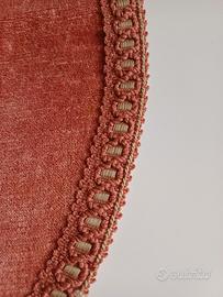 Centro velluto rosa antico scuro con bordo di passamaneria diam. 43. Presenta segni di usura