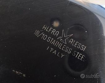 Centrotavola in acciaio Alessi vintage con piedini neri. Ottime condizioni, misure in foto.
