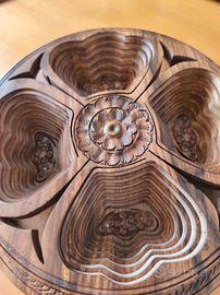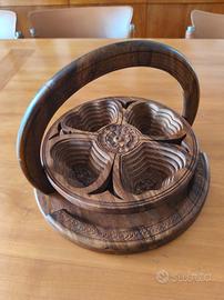completamente artigianale e intarsiato a mano propongo in vendita questo centrotavola pieghevole in legno