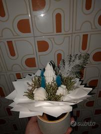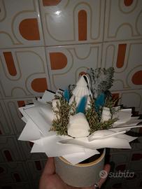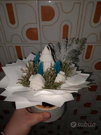 Centrotavola composizione Natalizia con albero di natale in cera di soia,fiori stabilizzati e codine,scatola in velluto e foglia innevata, fatto a mano, artigianale