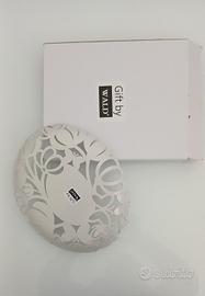 elegante centrotavola in metallo bianco con decorazione di fiori e farfalle
