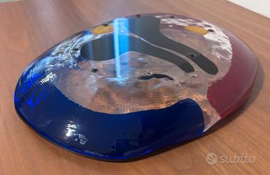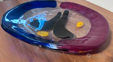 Splendido centrotavola in vetro artistico Bisazza, datato 1993, realizzato a vetrofusione con design moderno e colori vivaci.