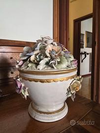 Vendo splendido centrotavola in porcellana Capodimonte, finemente lavorato a mano con ricca composizione floreale applicata. Oggetto di grande eleganza e presenza, caratterizzato da fiori realistici modellati singolarmente e decorati a mano, con dettagli delicati e bordi rifiniti in oro. Perfetto come elemento decorativo importante per soggiorno, sala da pranzo o ingresso, oppure per collezionisti di porcellane artistiche italiane. Condizioni: ottime, senza rotture o crepe (eventuali minimi segni del tempo coerenti con l’età). Dimensioni: [inserire diametro/altezza] Prezzo: 3000 € trattabili Ritiro a mano preferibile, data la delicatezza dell’oggetto. Possibile spedizione con imballo accurato.