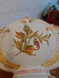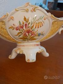 elegante centro tavola in ceramica di Bassano, per composizioni floreali, decorato con intrecci e fasci di fiori, molto decorativo