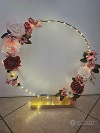 cerchio centrotavola fatto a mano con led usato solo una volta. Dalla base misura cm.49, l'interno del cerchio misura cm.50