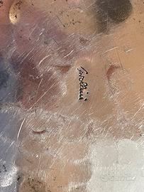 • Fondo: decorato con una spettacolare lavorazione a "raggiera" o "sunburst" incisa. Questo motivo crea un effetto dinamico e materico, tipico del design modernista/brutalista italiano.