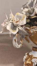 Centrotavola vintage anni ' 50 , porcellana di Capodimonte , in stile barocco , caratterizzato da ricchi motivi floreali e finiture dorate .