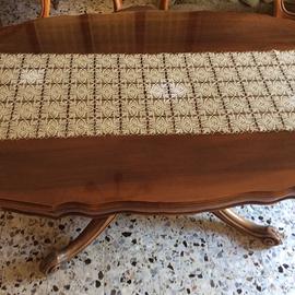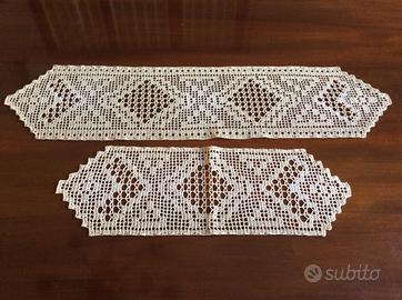 Centrotavola fatto ad uncinetto e centrini in coordinato.