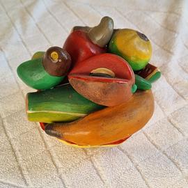 Vendo composizione decorativa di frutta tropicale in ceramica, pezzo originale di artigianato salvadoregno. Interamente dipinto a mano con colori vivaci e brillanti. Ottimo come soprammobile o regalo per amanti dell'oggettistica etnica. Materiale: Ceramica dipinta. Stato: Ottime condizioni. Ritiro: Solo ritiro a mano in zona Saronno (VA).