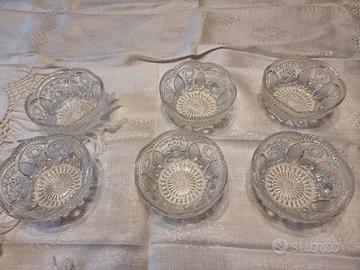 Elegante set composto da un centrotavola/fruttiera e sei coppe per macedonia anni '70 in cristallo.