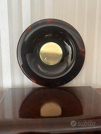 Splendito piatto da centro prodotto negli anni settanta in lucite tartarugata e disco centrale in ottone. Ottimamente conservato, sul retro è presente adesivo Team Guzzini. Diametro 43 cm circa. Lievi segni del tempo e uso come da foto. Prodotto usato. Visibile senza impegno a Milano zona Garibaldi. Non spedisco.