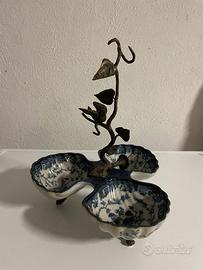 Centrotavola vintage 3 porta cibo in ceramica manico in bronzo con uccellino 250 euro trattabili