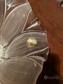 Splendida coppa decorativa vintage a forma di loto/tulipano, un classico dell'artigianato artistico italiano. L'oggetto combina la purezza del cristallo superiore con il prestigio dell'argenteria fiorentina.