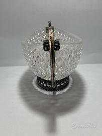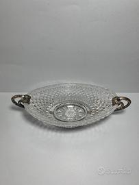 Alzata centrotavola in metallo argentato e cristallo, risalente al XX secolo (‘900).