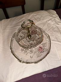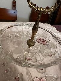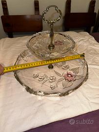 Portafrutta centrotavola a 2 ripiani tondi, in vetro decorato. Misure vedi in foto