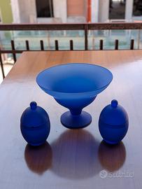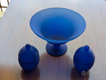 Centrotavola in vetro con zuccheriera in vetro fatto a mano. Vendo per inutilizzo. Ritiro a carico dell'acquirente. Non spedisco.