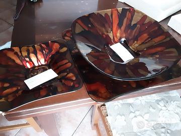 vendo 3 centrotavola in vetro rosso mai utilizzati.Le scatole dei due piatti più grandi sono un pochino ma i centrotavola sono senza difetti
