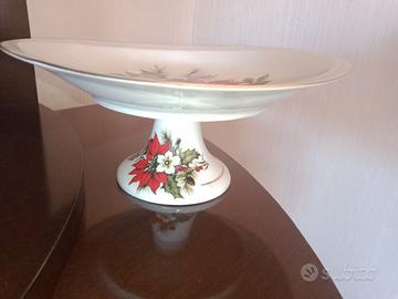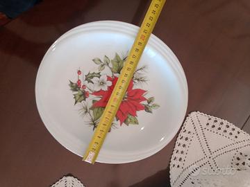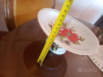 centro tavola piatto alzata alzatina di porcellana Limoges vintage con stampa natalizia Natale fiori