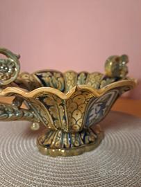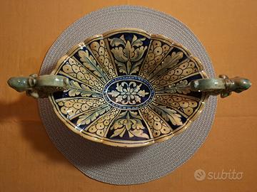 Vendo centrotavola in maiolica smaltata, realizzato da Robbia di Gualdo Tadino. Articolo vintage, presenta alcuni difetti e sbeccature nei bordi e nelle estremità dei manici. Per qualsiasi informazione potete contattarmi in chat!