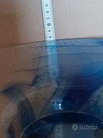 Vendo elegante centrotavola in vetro blu cobalto e trasparente della linea Murano, prodotta da Bormioli Rocco. Il bellissimo motivo a spirale e il colore blu cobalto lo rendono un pezzo decorativo straordinario. La ciotola è realizzata in vetro di alta qualità e presenta una finitura lucida che ne esalta la bellezza. E’ possibile utilizzarlo come centrotavola, porta dolci o portafrutta. Le dimensioni sono di circa 33 cm. esterno, altezza cm. 7. Ritiro, possibilmente, al mio domicilio a Milano, niente spedizione.