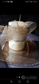 Centrotavola natalizio in vetro color ambra, con grande cero.