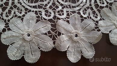 Splendido centrotavola in vero Pizzo del Tombolo di Cantù interamente fatto a mano, misura larghezza 68 cm.Spese di spedizione a carico dell'acquirente