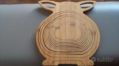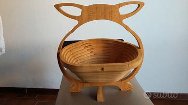 Portafrutta o porta oggetti PIEGHEVOLE a forma di gatto in legno chiaro. Centrotavola, da riporre in un cassetto occupa pochissimo spazio. Consegna di persona