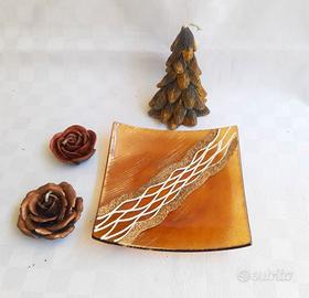 #arredamento casa #vassoio ambrato vetro dipinto #centrotavola per le feste #centro tavola con rose #centrotavola con Pino Abete marrone con glitter color oro