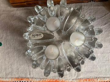 Centrotavola in cristallo termoresistente, mantiene tiepidi piatti o pietanze già cotte oltre essere elemento d’arredo. Prodotto tedesco, linea Becker Design, necessita solo di tre lumini (in dotazione) e, una volta accesi creano anche una piacevole atmosfera sia per cene intime sia tra amici. Consegno, se gradito, anche altri tre lumi utilizzati una sola volta. Consegna diretta fino Aosta città e dintorni e Donnas-Pont SM.